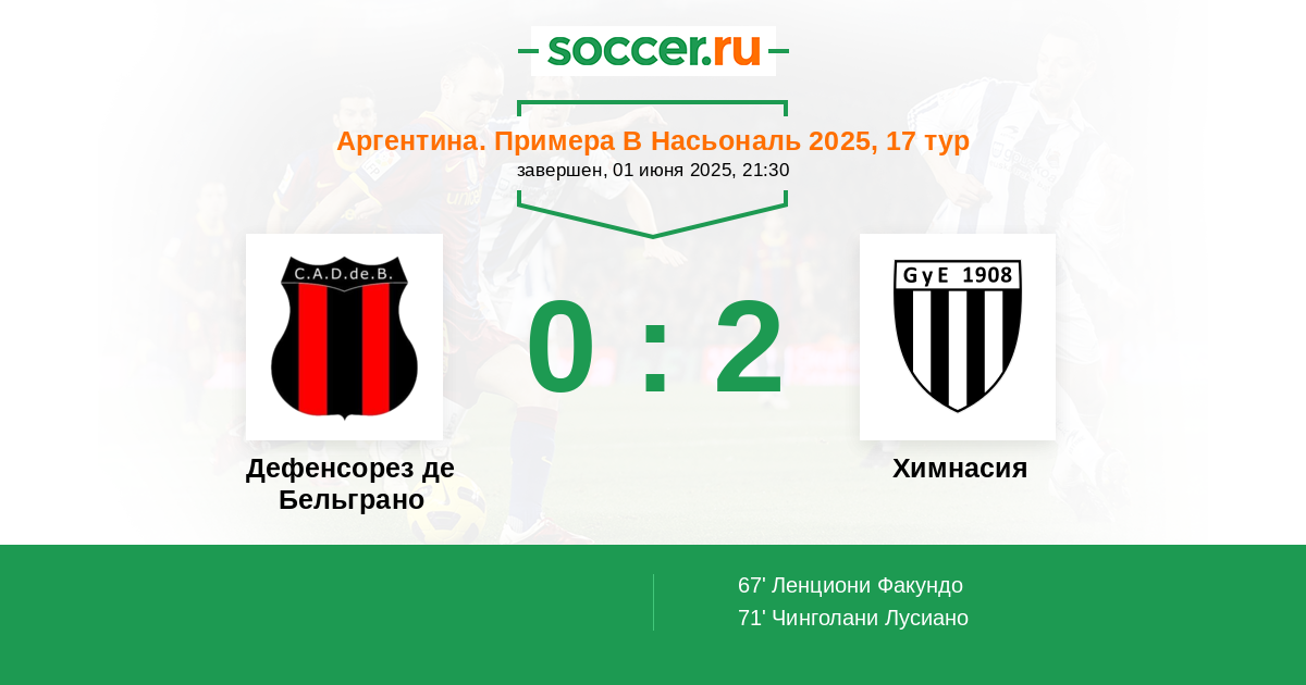 Протокол матча Дефенсорез де Бельграно против Химнасия