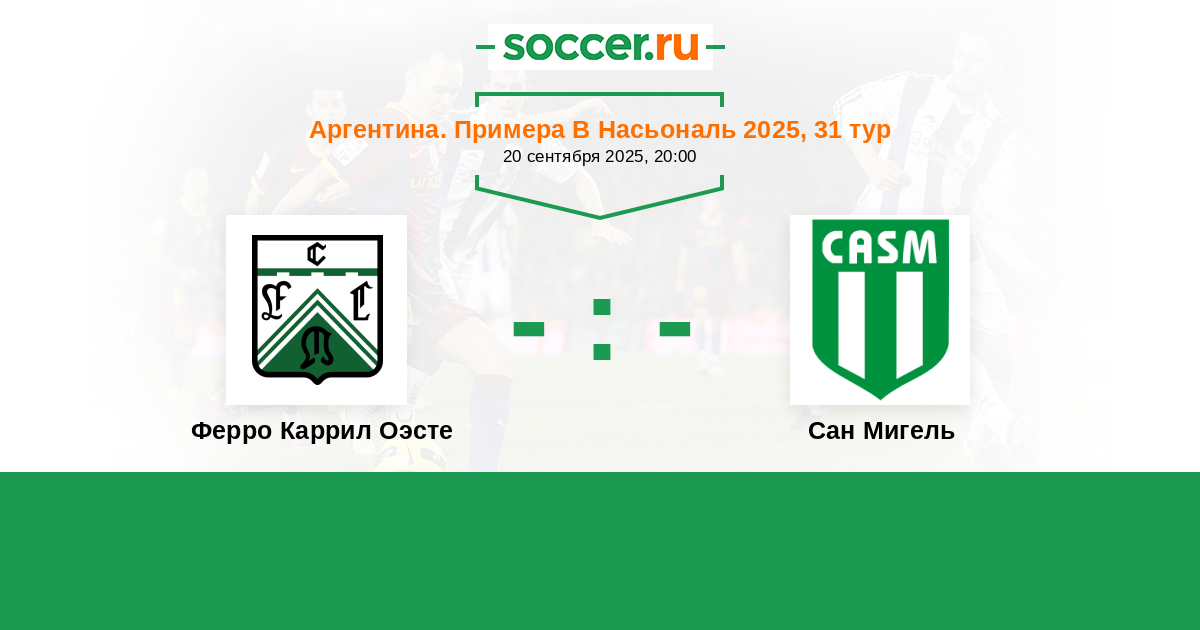 Протокол матча Ферро Каррил Оэсте против Сан Мигель