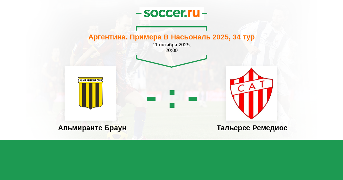 История матча Альмиранте Браун против Тальерес Ремедиос