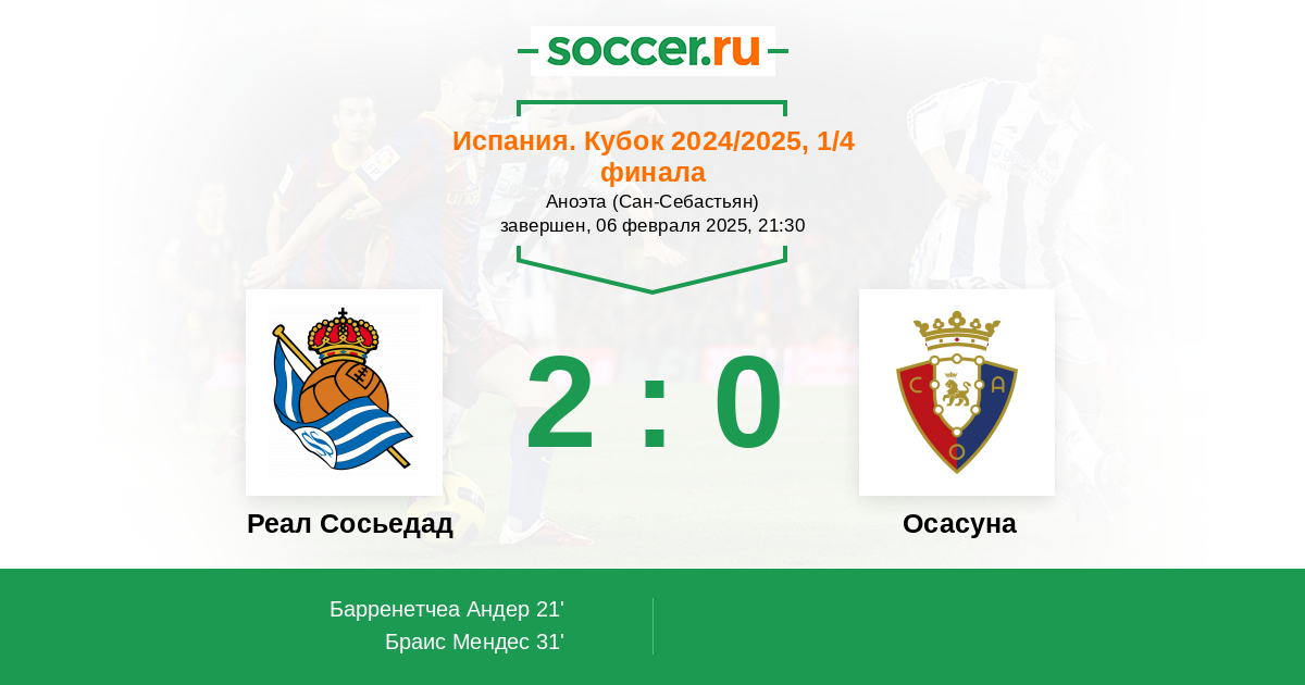 31' (2:0) Браис Мендес (23) (Ойарсабаль Микель (10))
