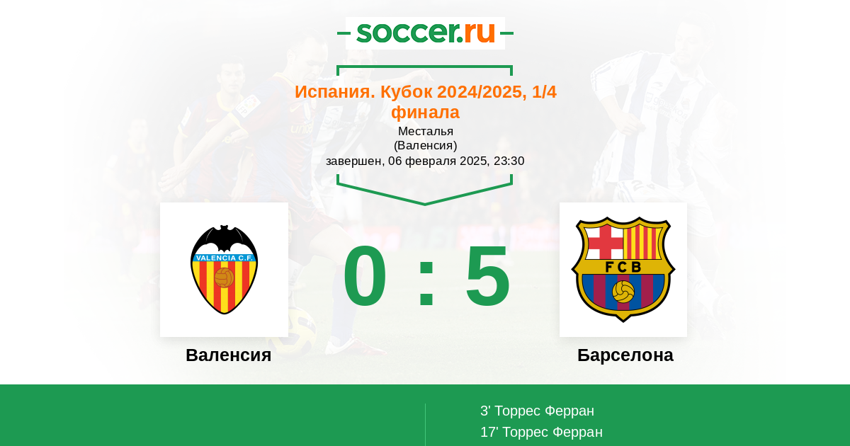 Так Валенсия проиграла только один из последних пяти матчей с учетом всех турниров и это был как раз разгром от Барселоны со счетом 1:7.
