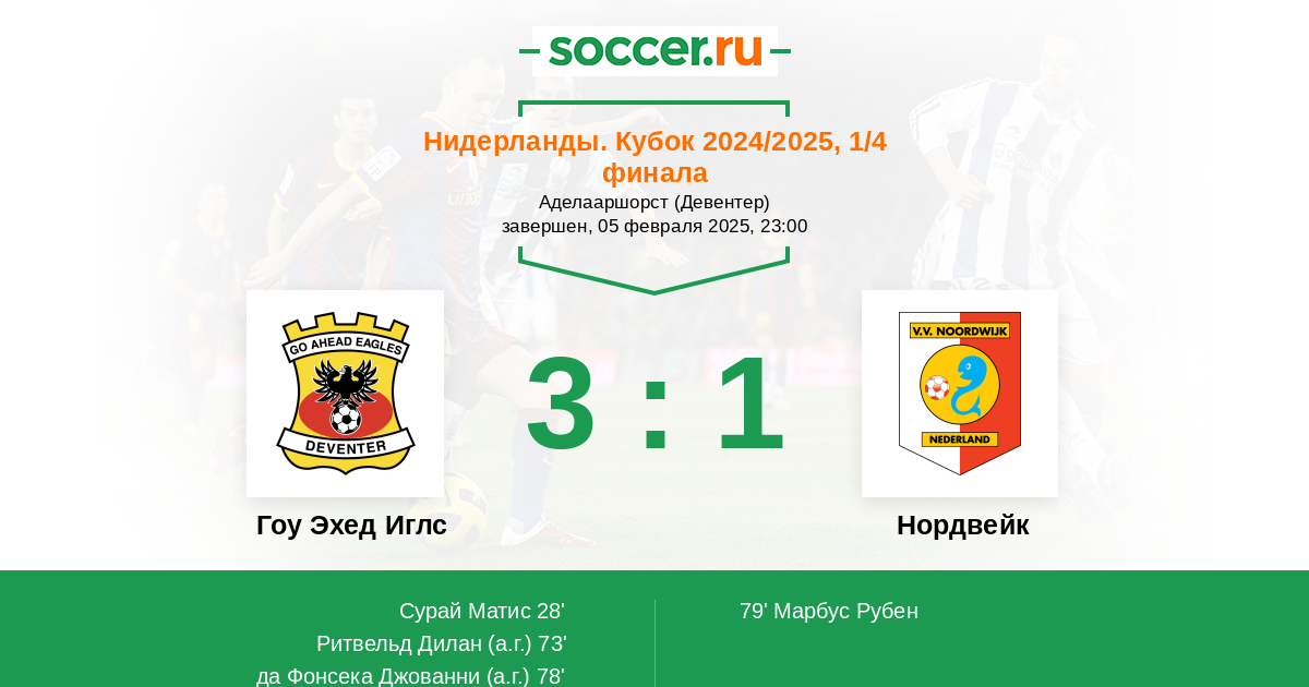 73' (2:0) Автогол Ритвельд Дилан (40)
