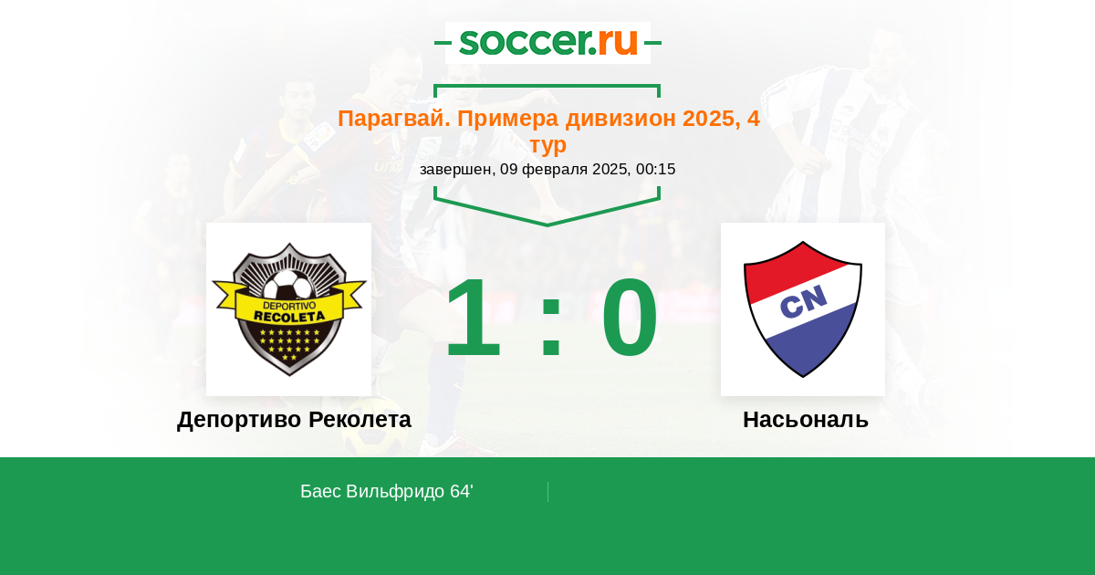 Протокол матча Депортиво Реколета против Насьональ