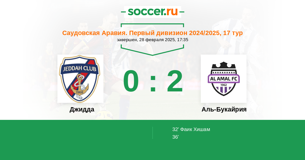 В личных встречах преимущество имеет: ФК Джидда. ФК Джидда в личных встречах, в среднем забивает: 1.5 гола, Аль-Букаирия в личных встречах, в среднем забивает: 1.2 гола. Вывод: Между собою команды наблюдается разный футбол по забитию голов