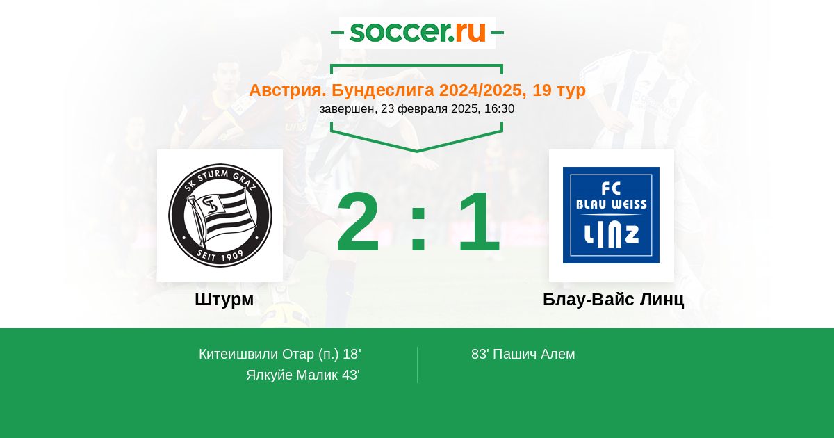 Протокол матча Штурм против Блау-Вайс Линц