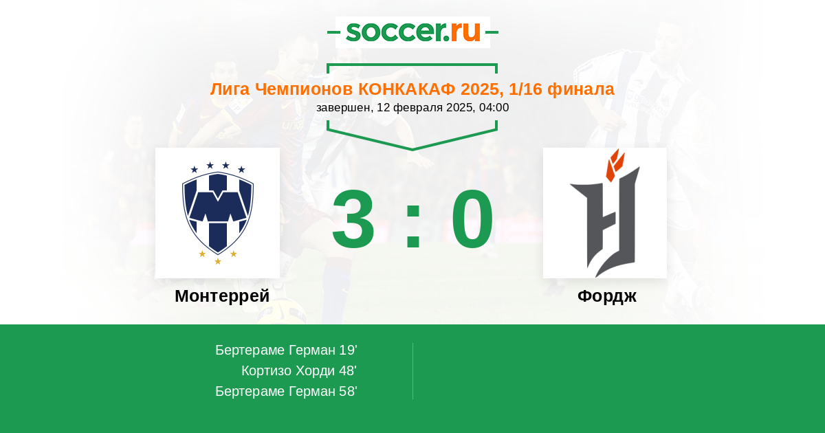 Протокол матча Монтеррей против Фордж