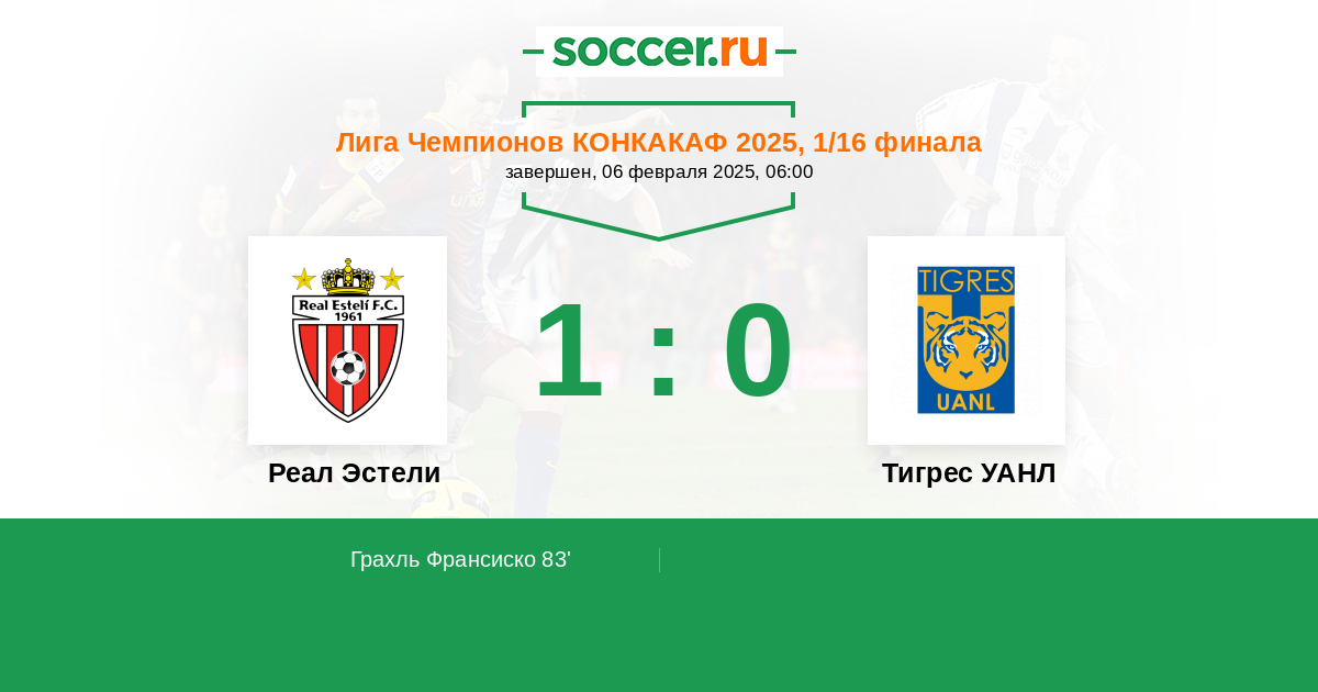 Протокол матча Реал Эстели против Тигрес УАНЛ