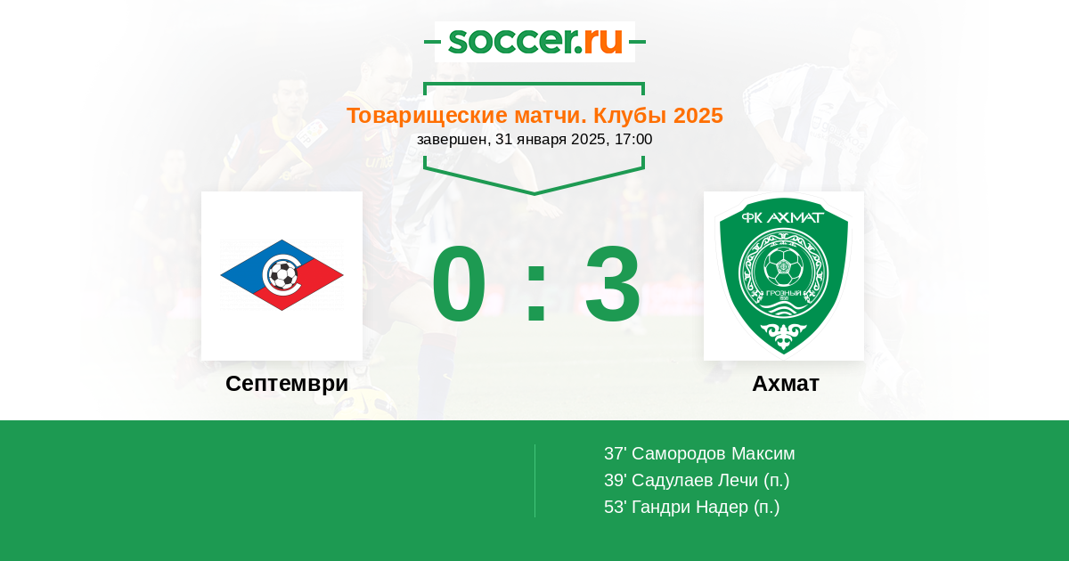Протокол матча Септември против Ахмат