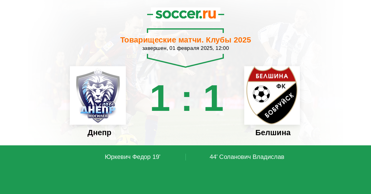 Протокол матча Днепр против Белшина