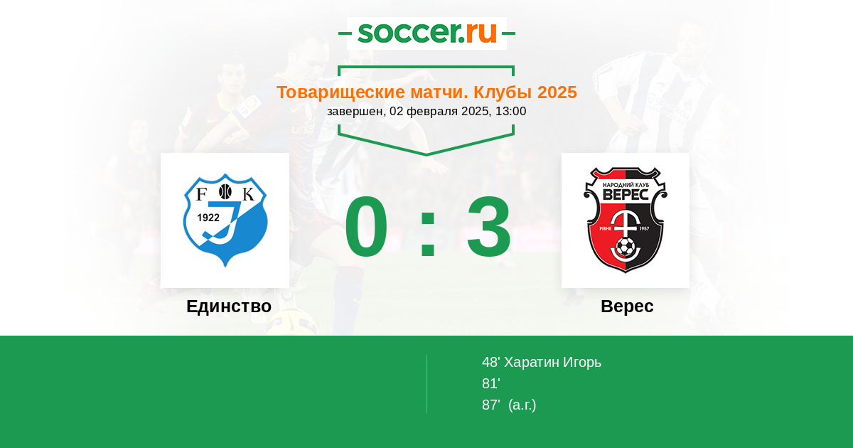 Протокол матча Единство против Верес