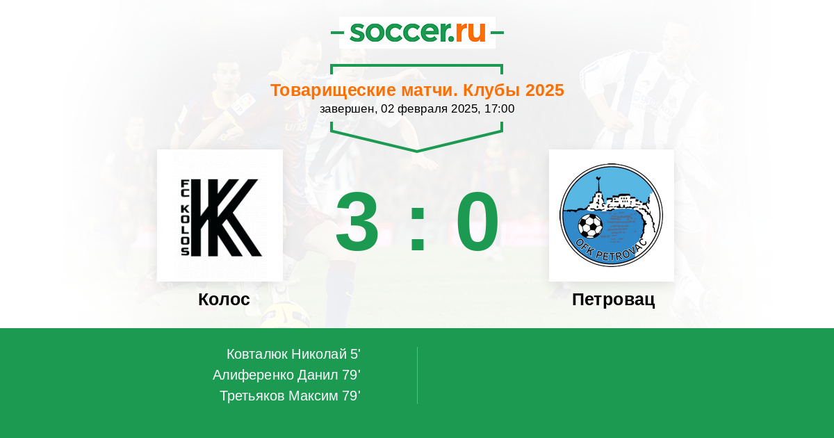Протокол матча Колос против Петровац