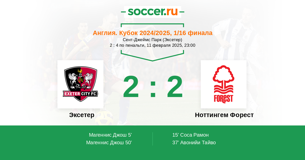 В предстоящем матче 4 раунда Кубка Англии между командами Эксетер Сити и Ноттингем Форест , более чем явным фаворитом на победу является команда гостей Ноттингем Форест , так как они играют лучше