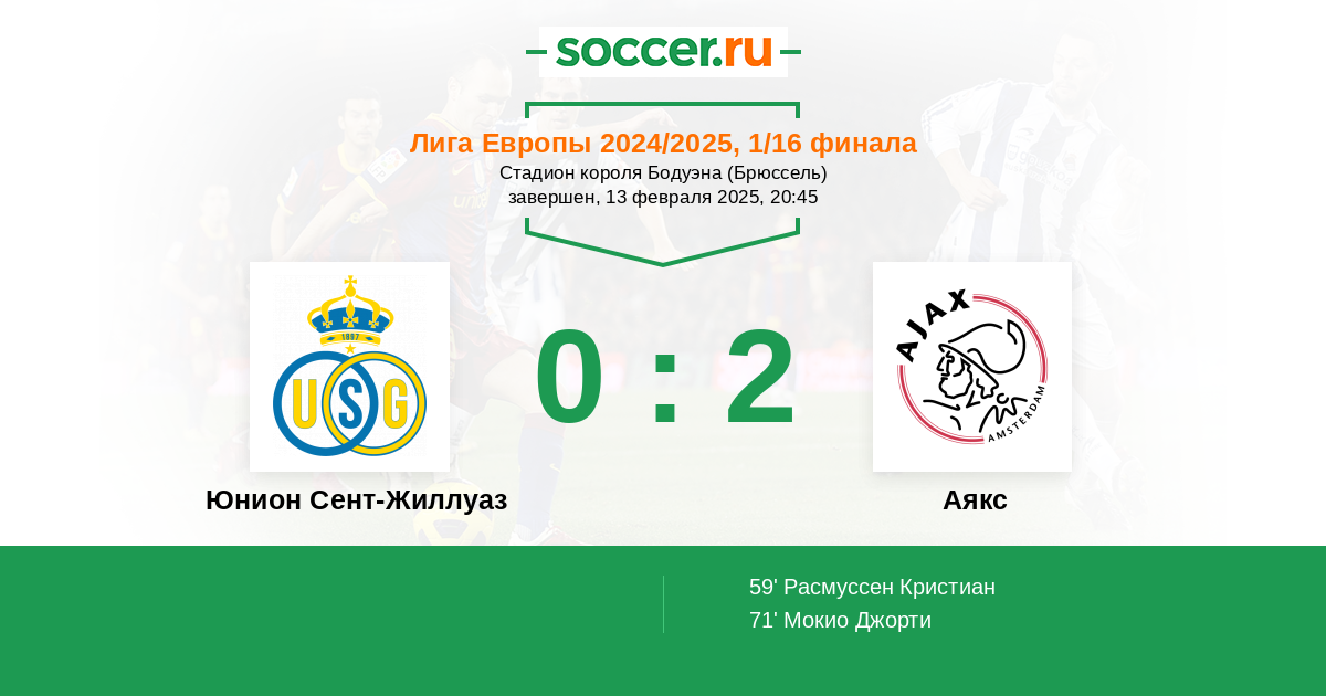 Протокол матча Юнион Сент-Жиллуаз против Аякс