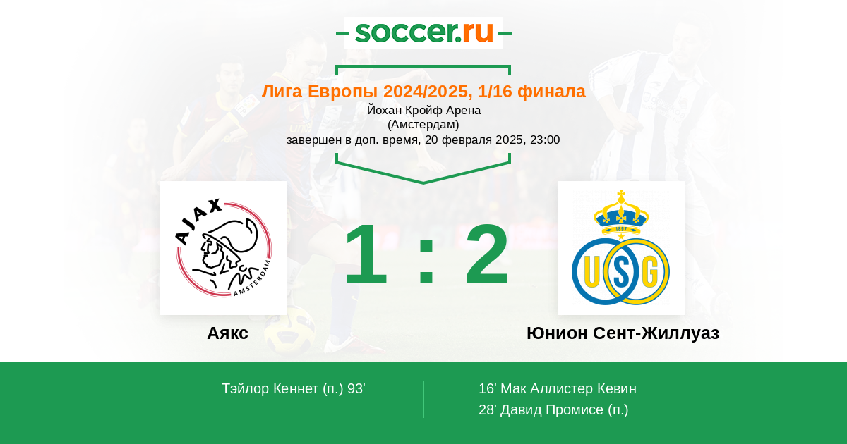 Протокол матча Аякс против Юнион Сент-Жиллуаз