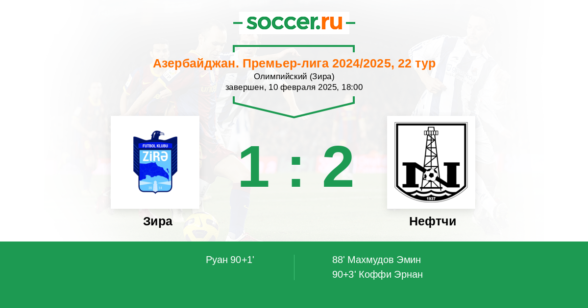 Протокол матча Зира против Нефтчи
