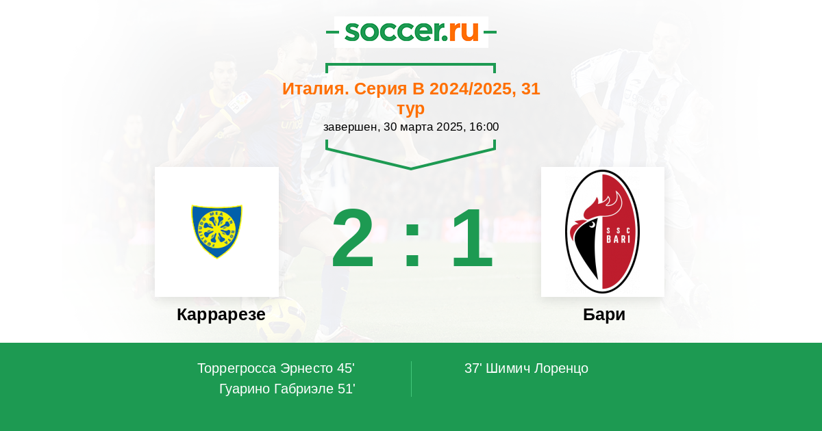 Протокол матча Каррарезе против Бари