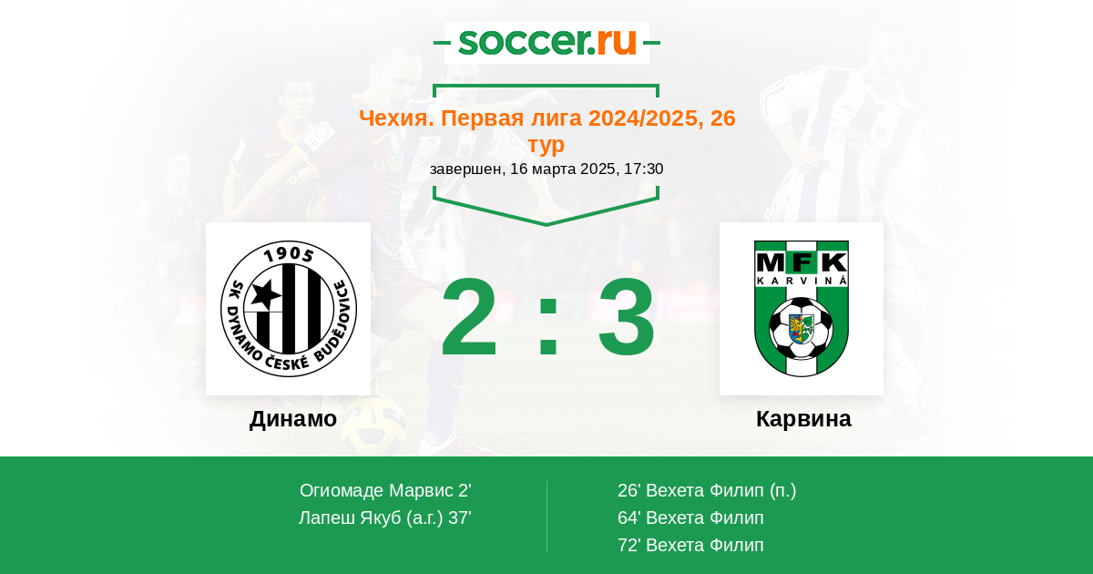 Протокол матча Динамо против Карвина