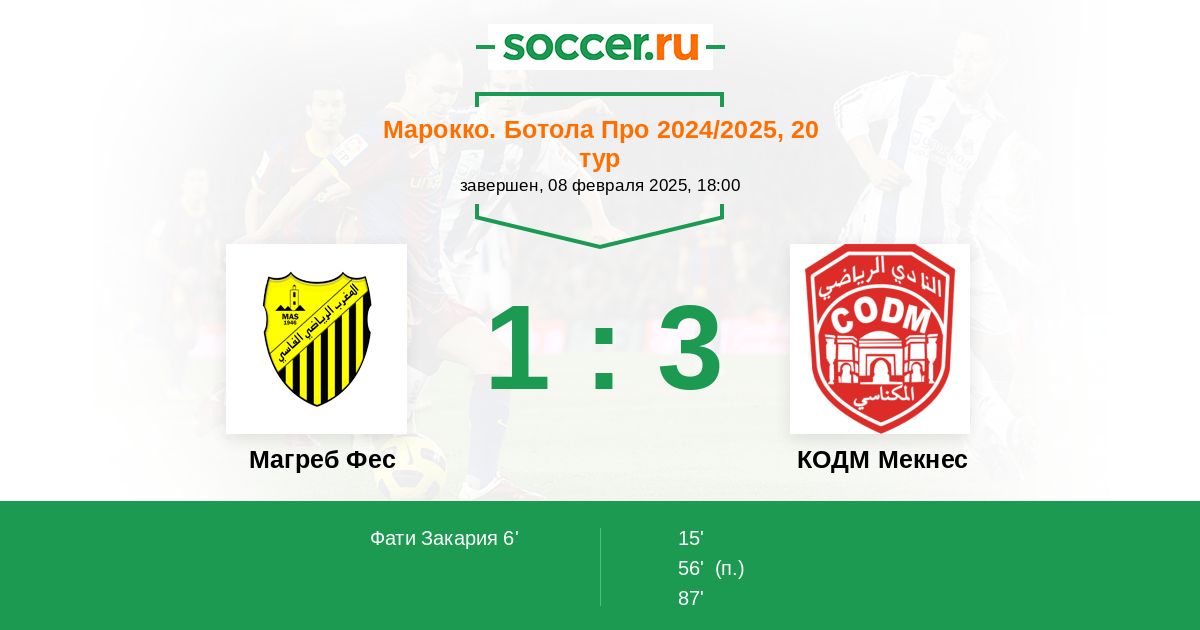 Протокол матча Магреб Фес против КОДМ Мекнес