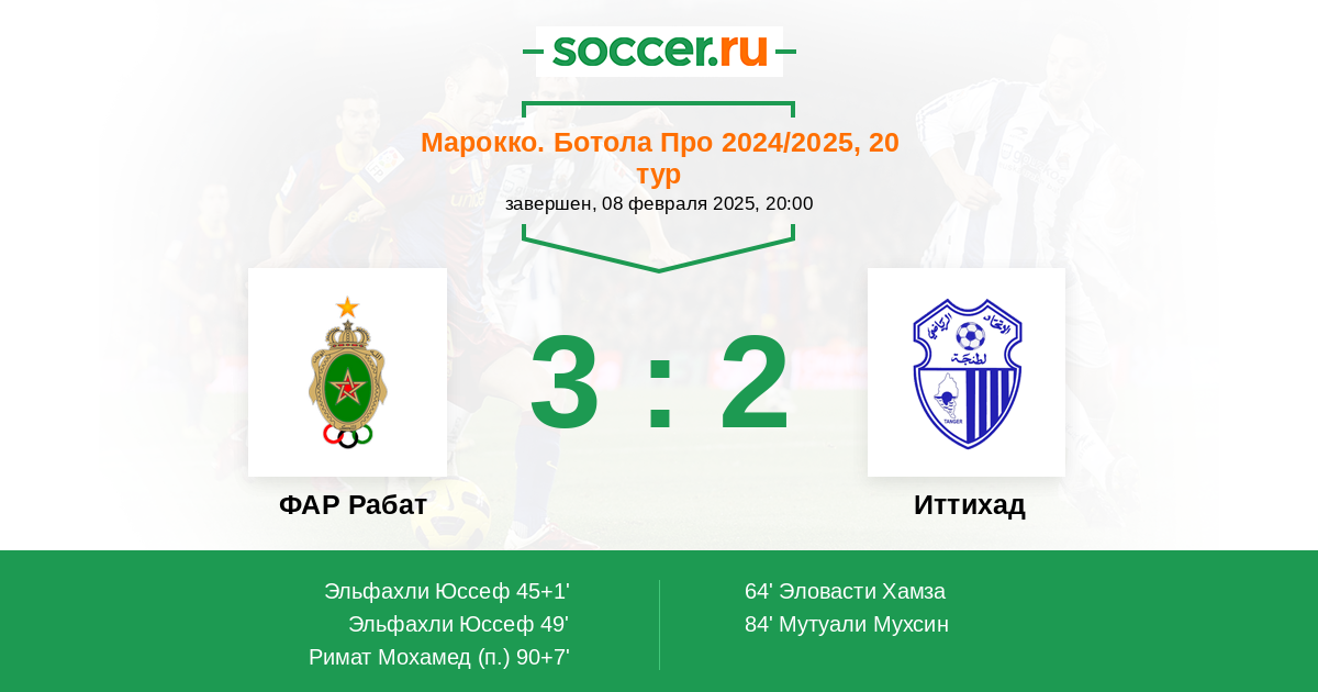 Протокол матча ФАР Рабат против ИР Анже