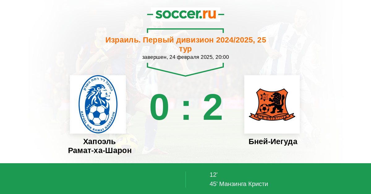 Протокол матча Хапоэль Рамат-ха-Шарон против Бней-Иегуда