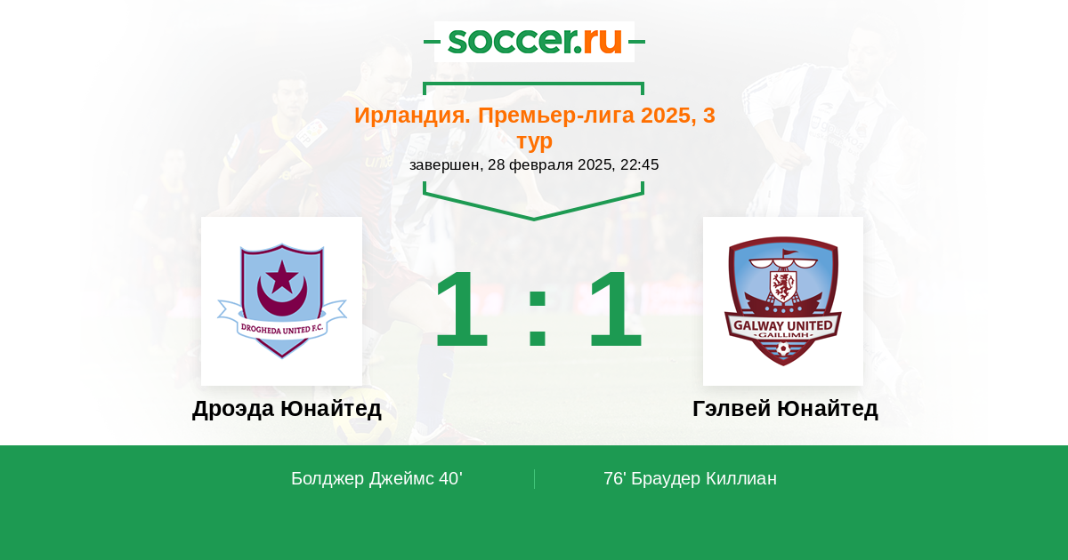 Протокол матча Дроэда Юнайтед против Гэлвей Юнайтед