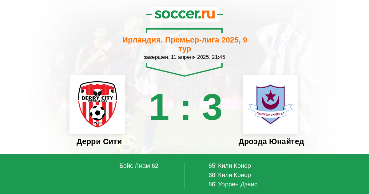 Протокол матча Дерри Сити против Дроэда Юнайтед