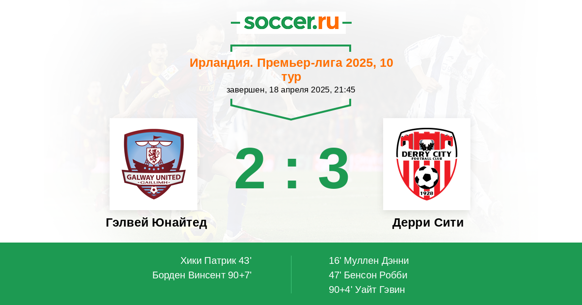 Протокол матча Гэлвей Юнайтед против Дерри Сити