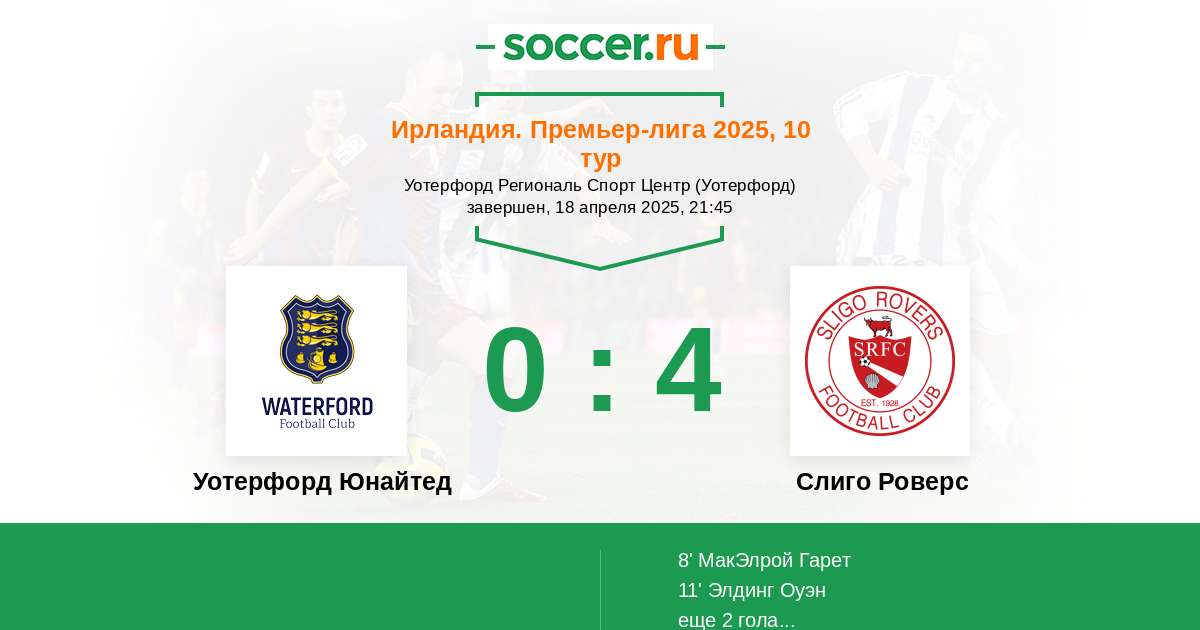 Протокол матча Уотерфорд Юнайтед против Слиго Роверс