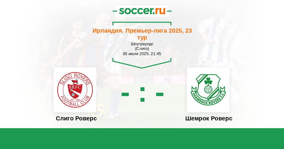 Протокол матча Слиго Роверс против Шемрок Роверс