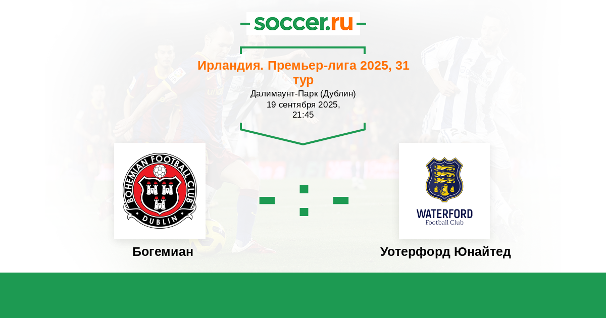 Протокол матча Богемиан против Уотерфорд Юнайтед