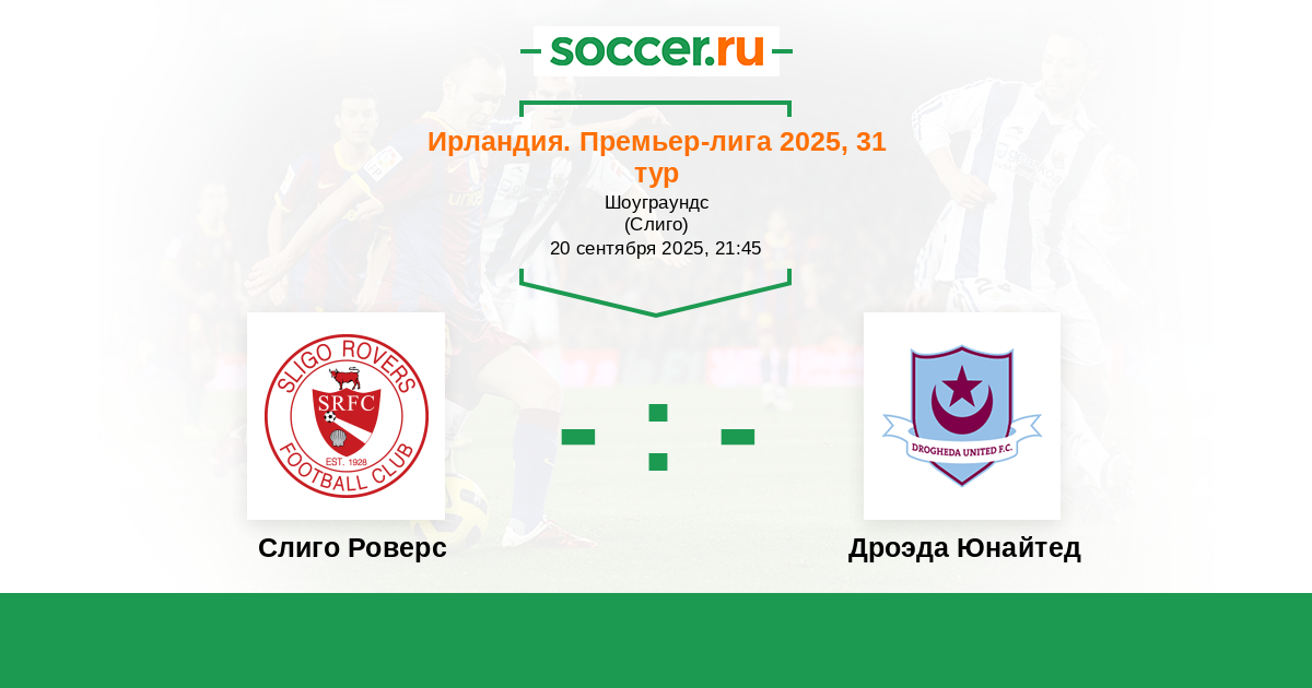 Протокол матча Слиго Роверс против Дроэда Юнайтед