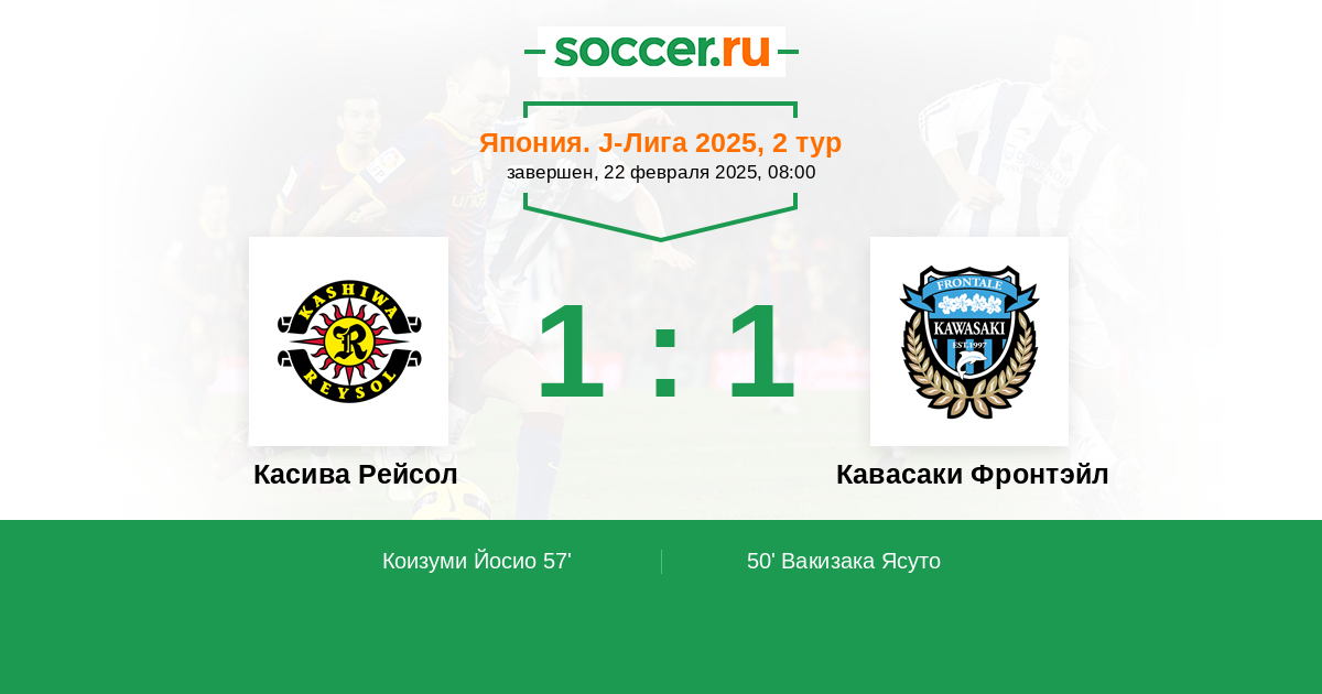 Протокол матча Касива Рейсол против Кавасаки Фронтэйл