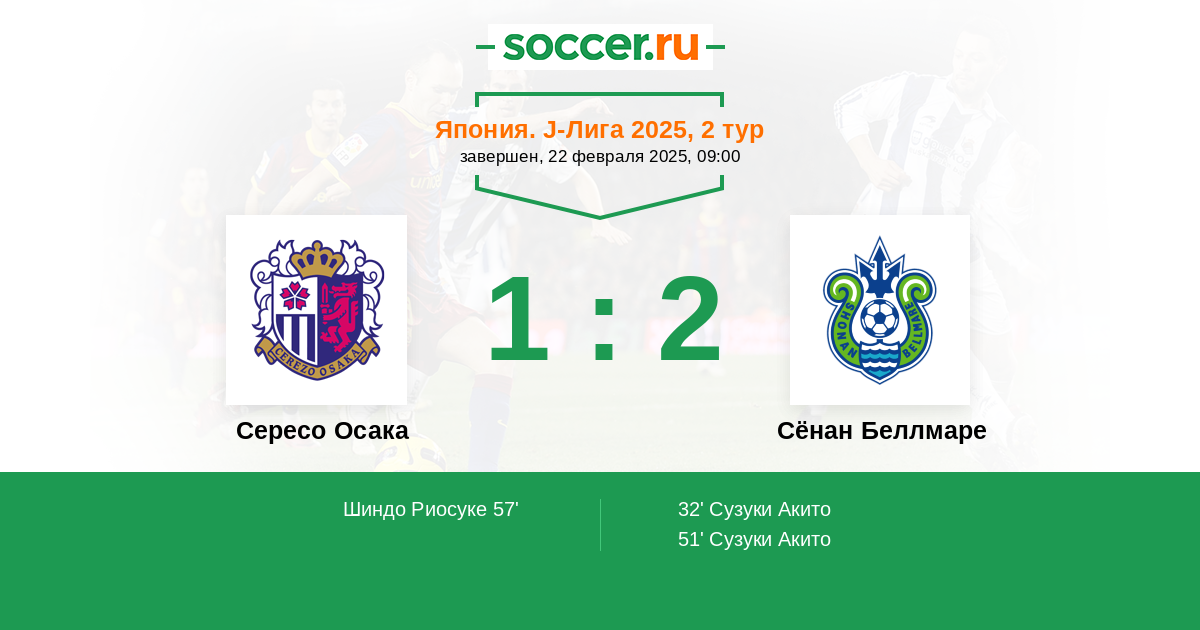 Протокол матча Сересо Осака против Сёнан Беллмаре