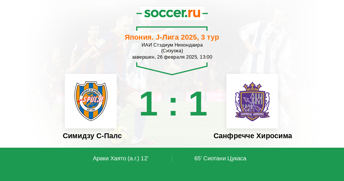 Протокол матча Симидзу С-Палс против Санфречче Хиросима