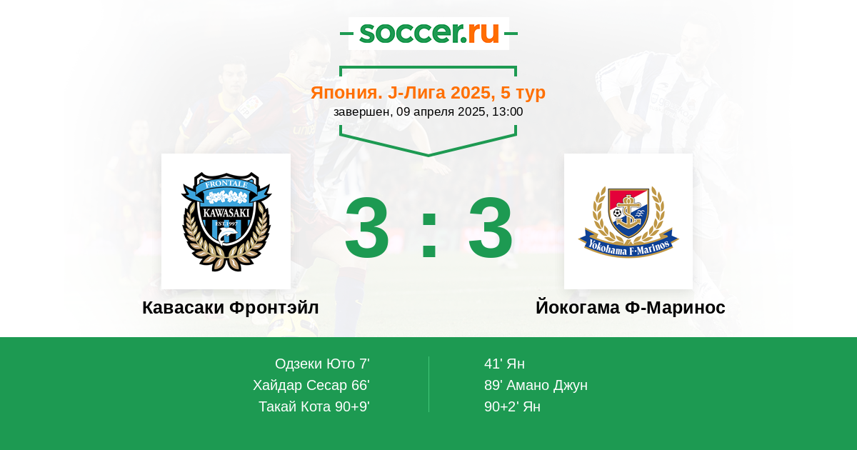 Протокол матча Кавасаки Фронтэйл против Йокогама Ф-Маринос