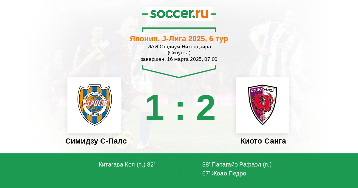 Протокол матча Симидзу С-Палс против Киото Санга