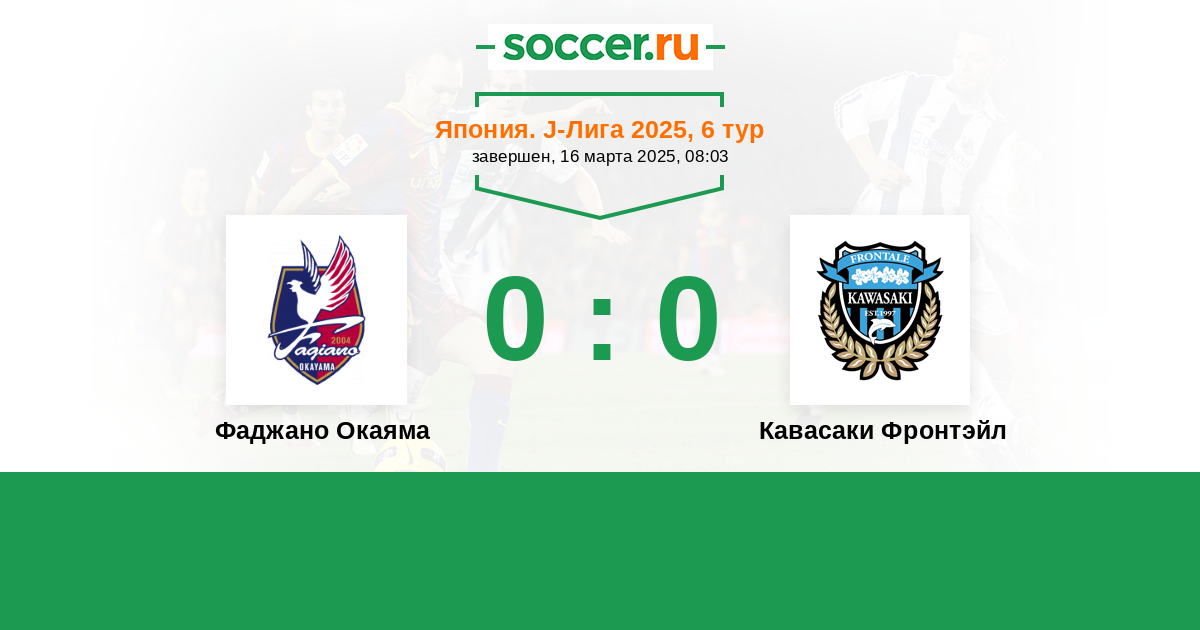 Протокол матча Фаджано Окаяма против Кавасаки Фронтэйл