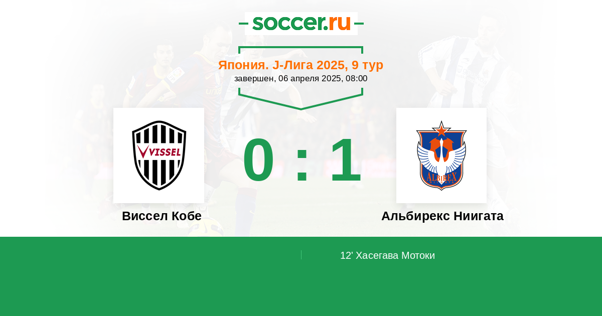 Протокол матча Виссел Кобе против Альбирекс Ниигата