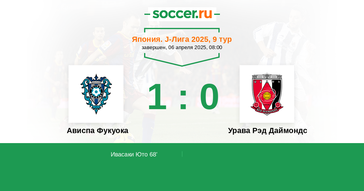 Протокол матча Ависпа Фукуока против Урава Рэд Даймондс