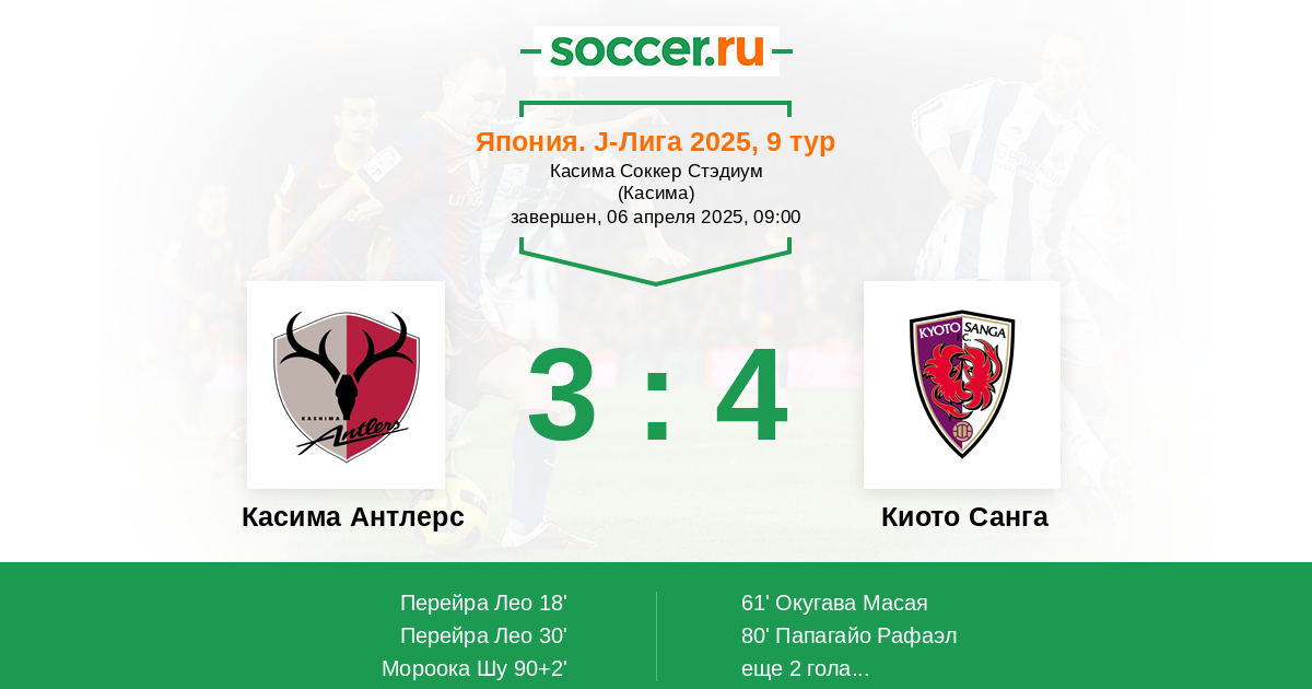 Гол90+5' (3:4) Папагайо Рафаэл (9) (Хара Таичи (14))