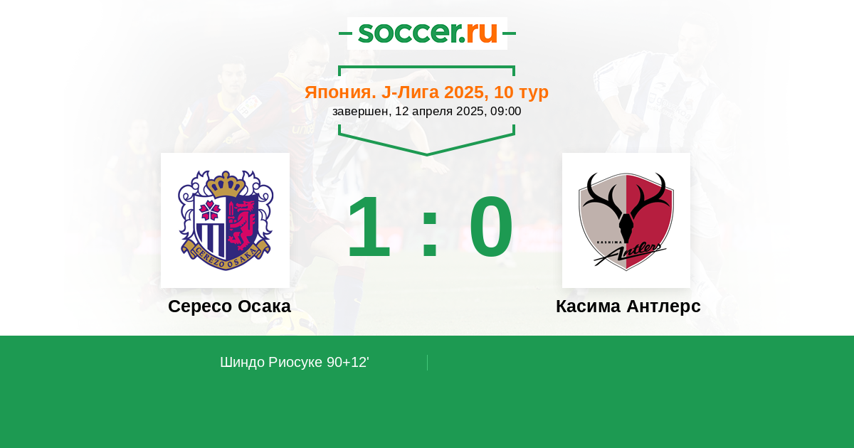 Протокол матча Сересо Осака против Касима Антлерс