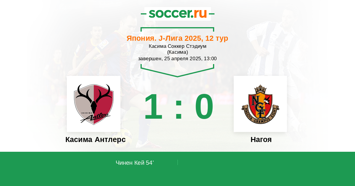Протокол матча Касима Антлерс против Нагоя