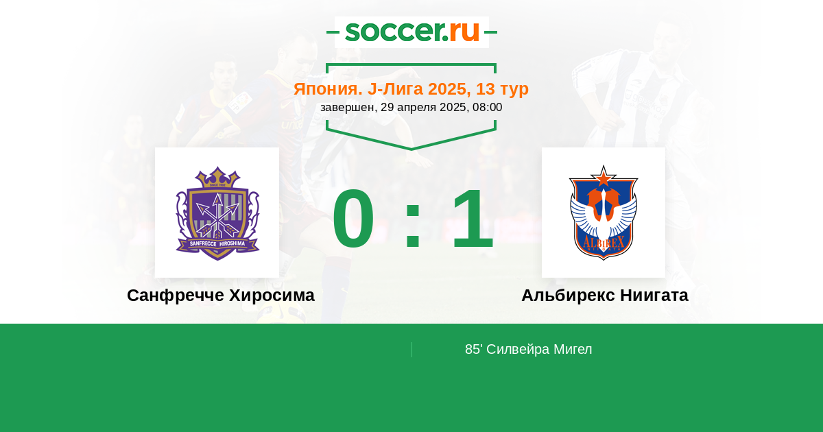 85' (0:1) Силвейра Мигел (20) (Хасегава Мотоки (41))