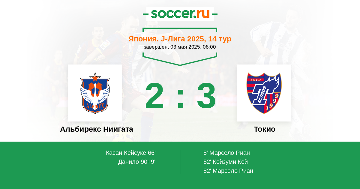 Протокол матча Альбирекс Ниигата против Токио