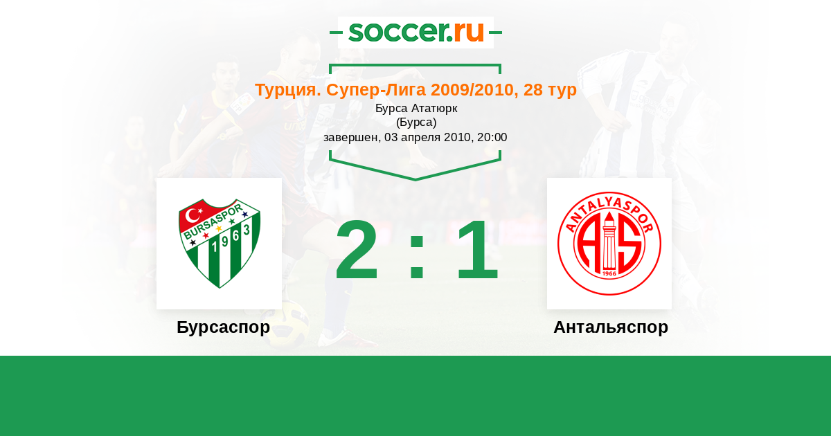 Турция. Суперлига 31.10.2009 Антальяспор Логотип футбольный клуб Антальяспор 1:1 Логотип футбольный клуб Бурсаспор Бурсаспор