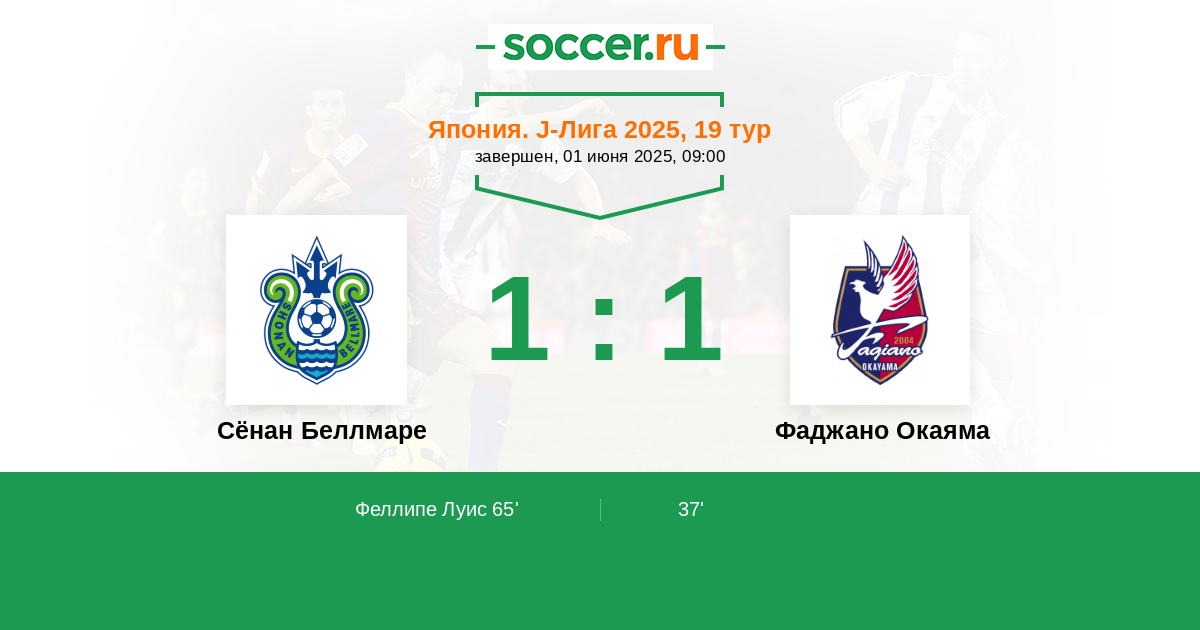 Протокол матча Сёнан Беллмаре против Фаджано Окаяма