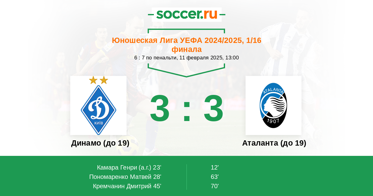 Протокол матча Динамо (до 19) против Аталанта (до 19)