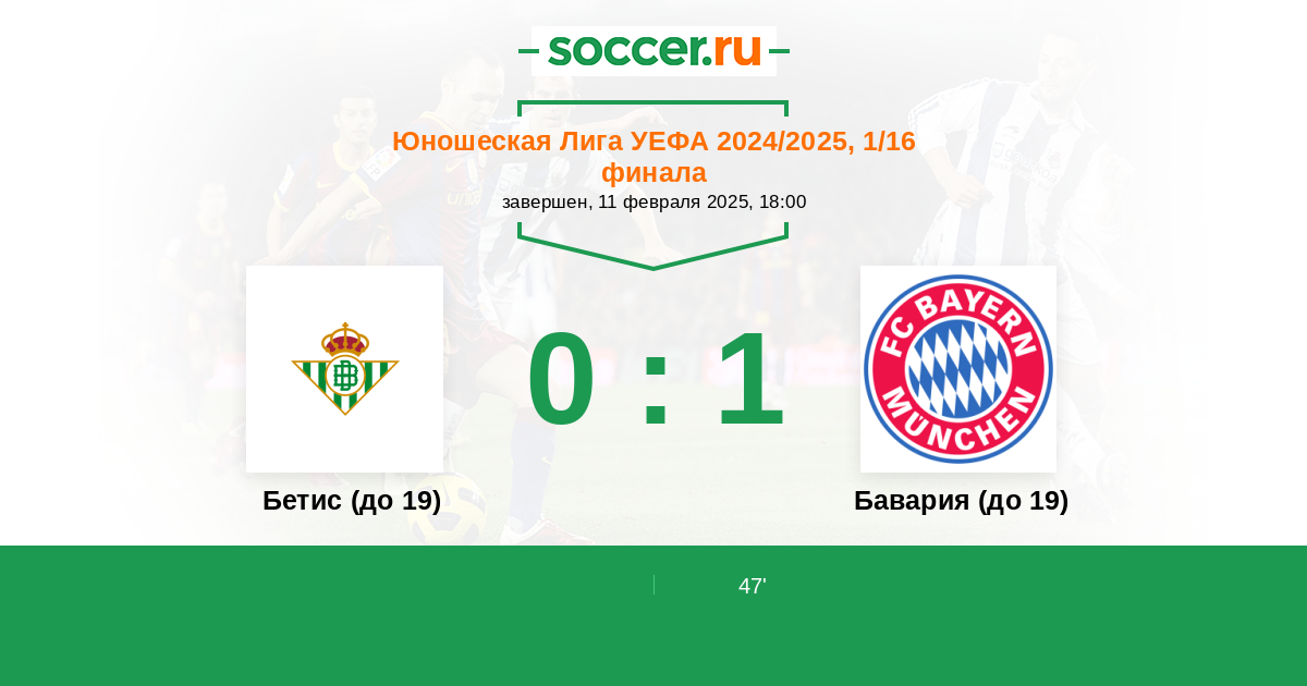 Протокол матча Бетис (до 19) против Бавария (до 19)