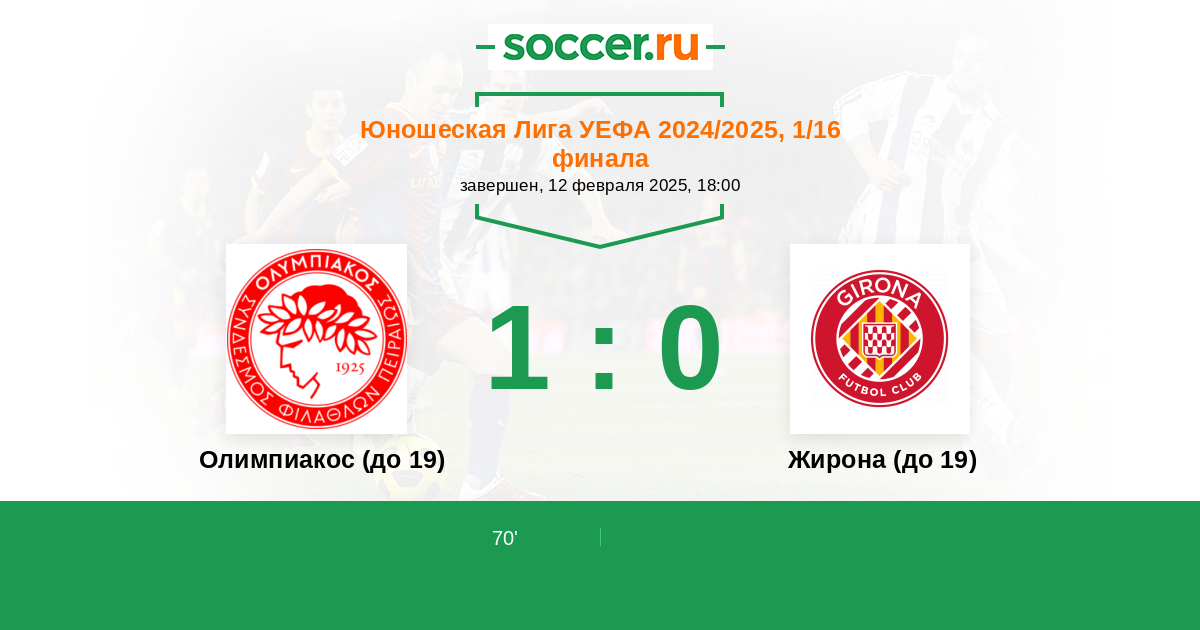 Протокол матча Олимпиакос (до 19) против Жирона (до 19)