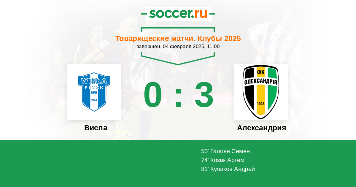 Протокол матча Висла против Александрия